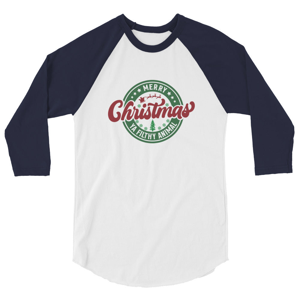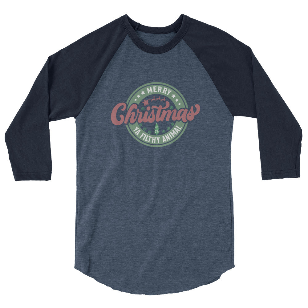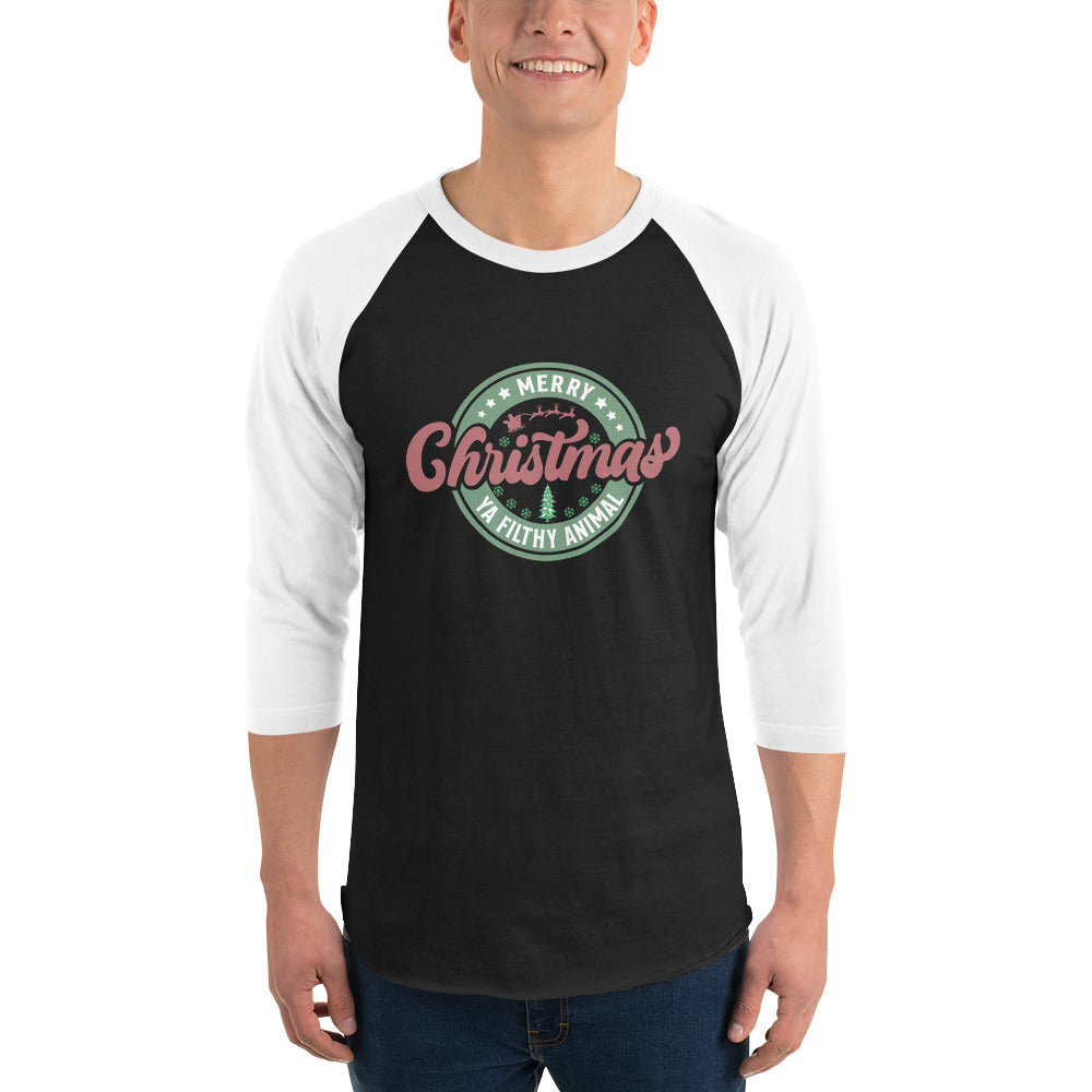 Merry Christmas Ya Filthy Animal - 3/4 sleeve raglan shirt