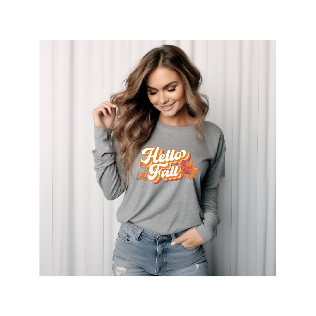 Retro Hello Fall - Unisex Lightweight Long Sleeve Tee