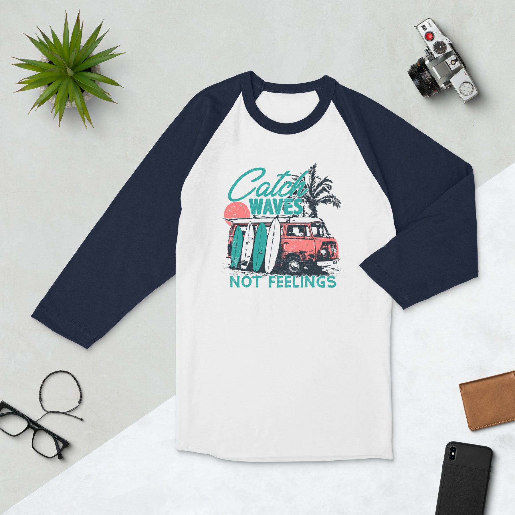 Catch Waves Not Feelings - 3/4 sleeve raglan shirt