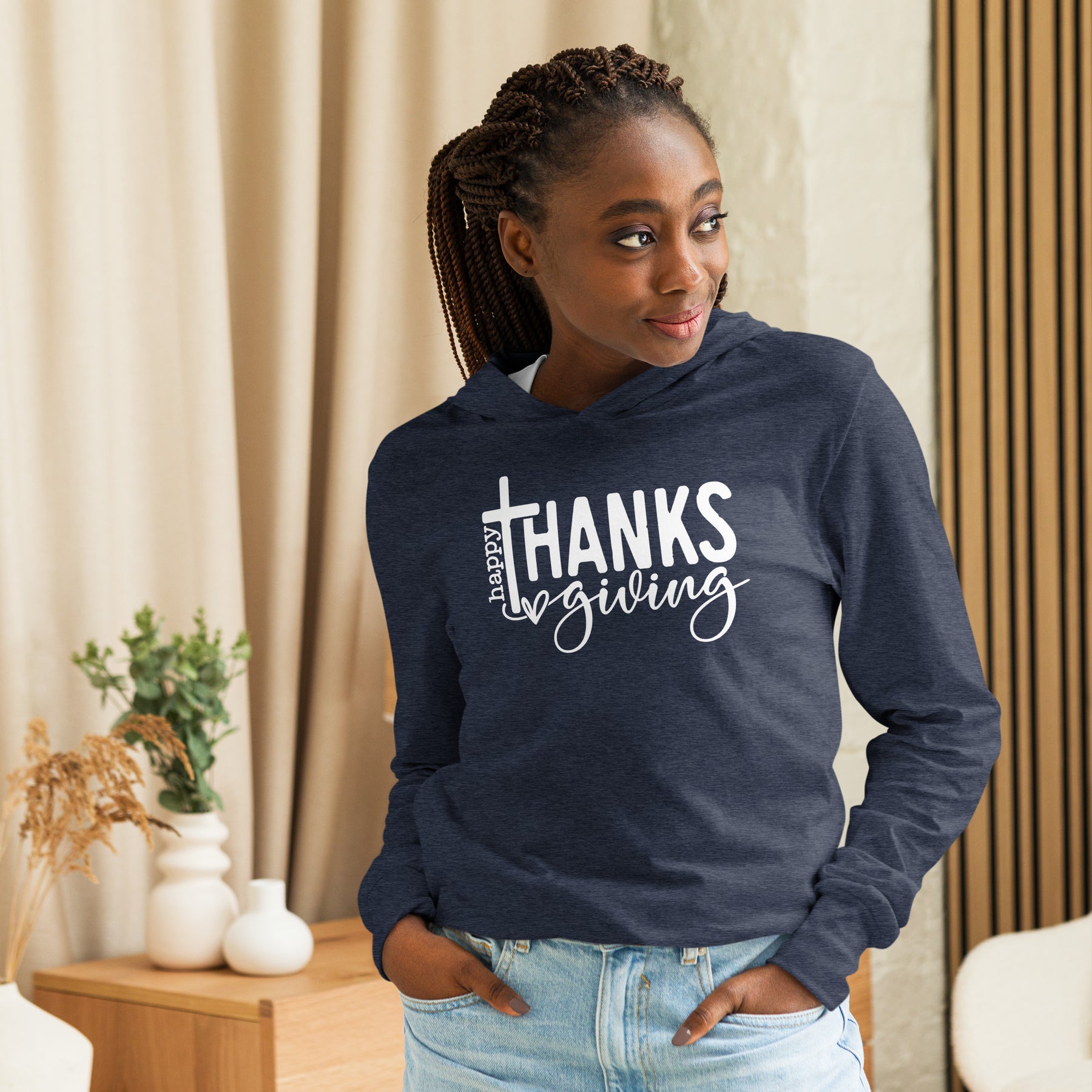 Thanksgiving Cross - Hooded long-sleeve tee