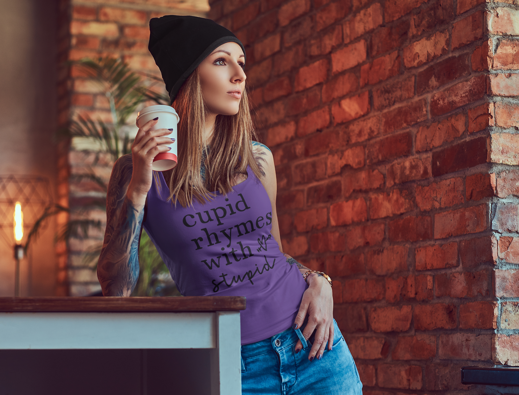 A high-quality print of this slim fit tank-top will turn heads. Bystanders won't be disappointed - the racerback cut looks good on any woman's shoulders.